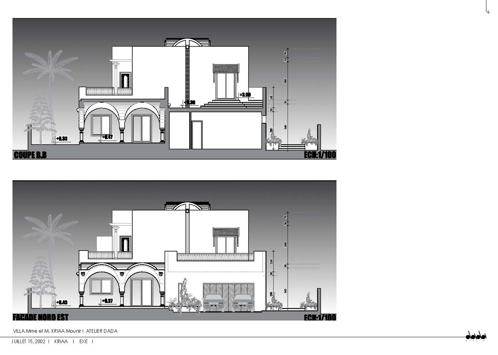 The KRIAA Villa, located in Sfax, underwent a significant evolution between the version submitted for the building permit and the execution phase. This second version corresponds to the architectural project developed in 2002 for construction, in collaboration with the architect Rached Chaabani.