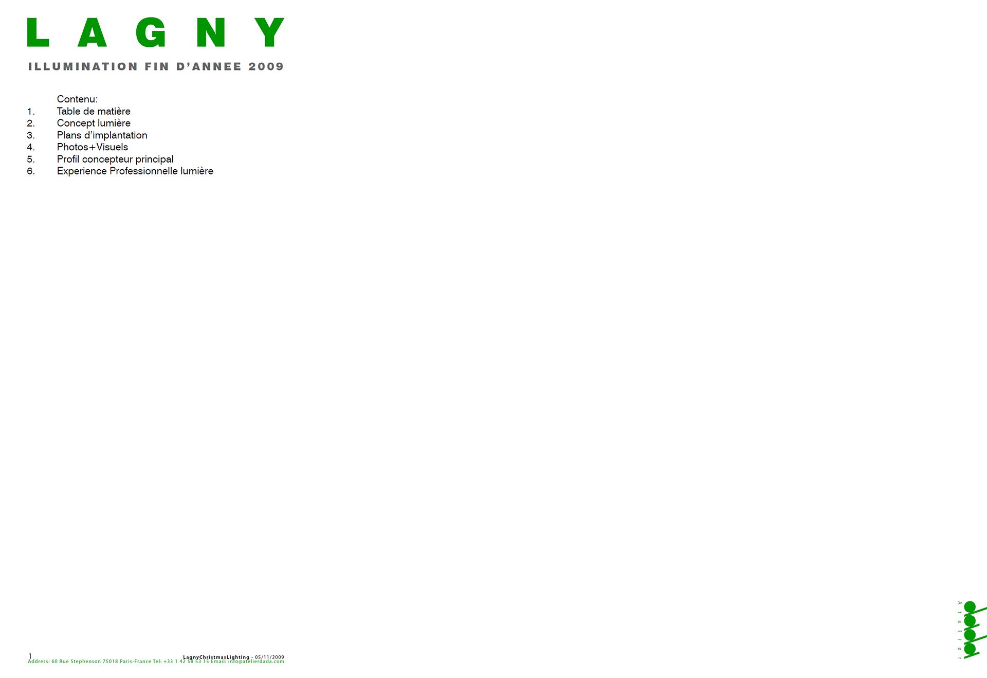 Pour les fêtes de fin d’année 2009, Atelier dada a eu le plaisir de concevoir le concept lumière des illuminations de la ville de Lagny-sur-Marne (5,72 km²), située en Île-de-France. Ce projet a été réalisé en collaboration avec l’agence d’architecture intérieure Dalitza Michel, qui était en charge du contrat global.