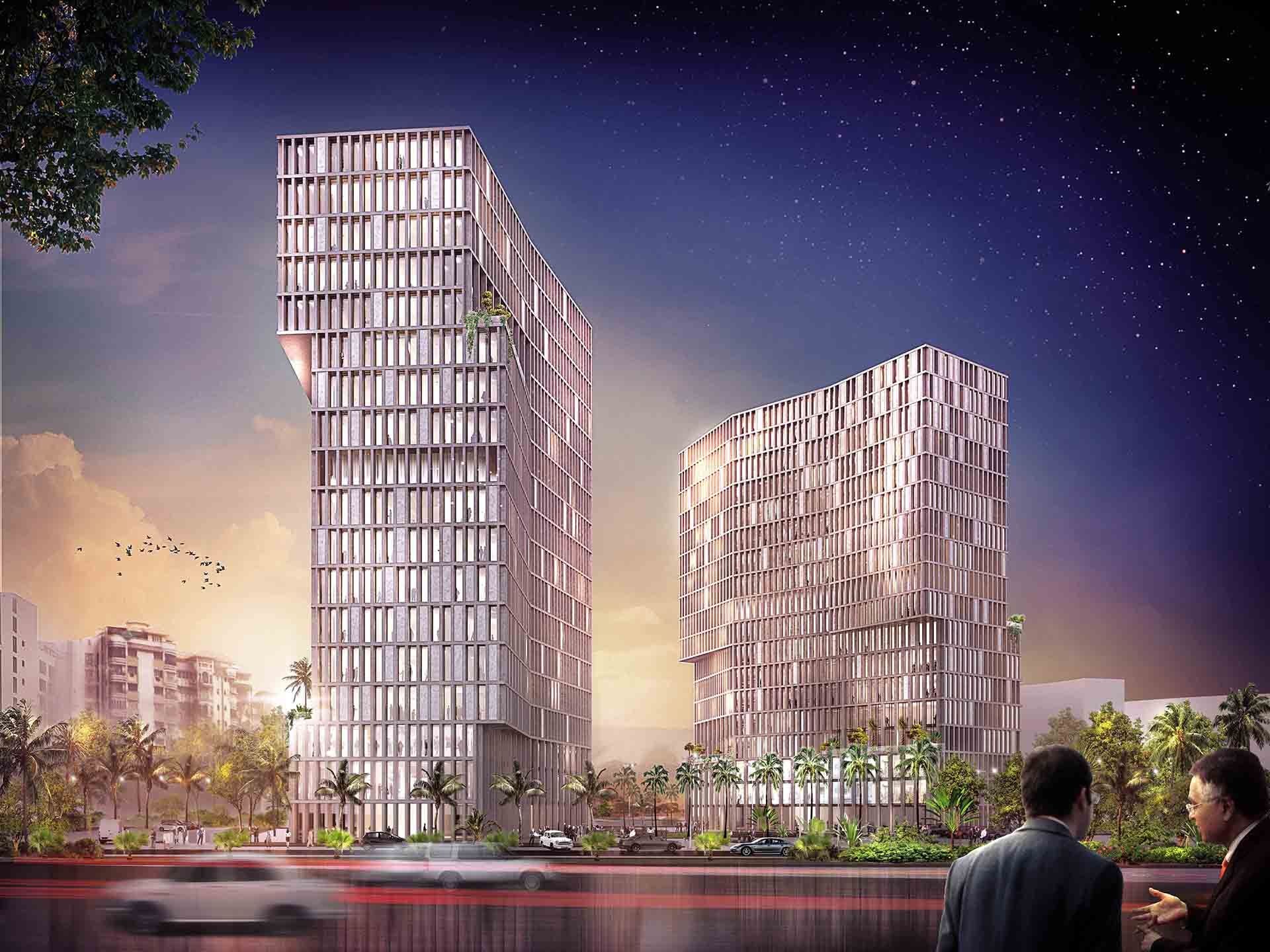 Atelier dada conçoit la mise en lumière de Mondeal Heights, des tours jumelles corporatives situées à Ahmedabad. Le projet est développé par HN Safal Developers, en collaboration avec Blocher & Blocher Architects et Design Cell Landscape Designers.