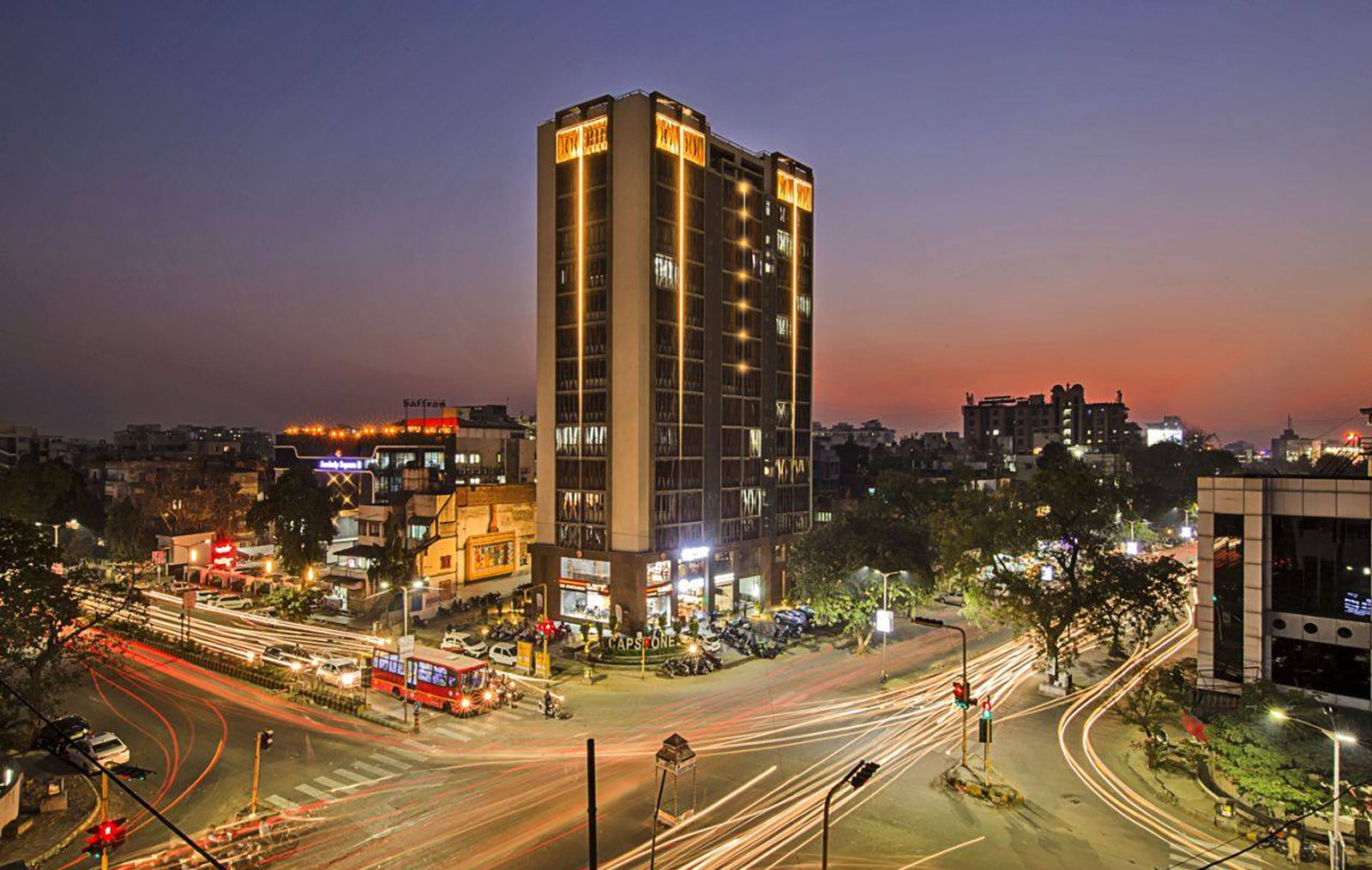 À la tombée de la nuit, la tour commerciale mixte Capstone, conçue pour le client D&C Developer, s’éveille comme un Yogi en méditation, révélant peu à peu sa lumière intérieure. La façade principale se structure autour d’un axe central lumineux évoquant les sept chakras, centres d’énergie vitale, tandis que les lignes latérales traduisent une respiration graduée, semblable aux poumons d’un corps apaisé. Au dernier niveau, les fenêtres équipées de brise-soleil incarnent l’âme du bâtiment, stable et intemporelle.