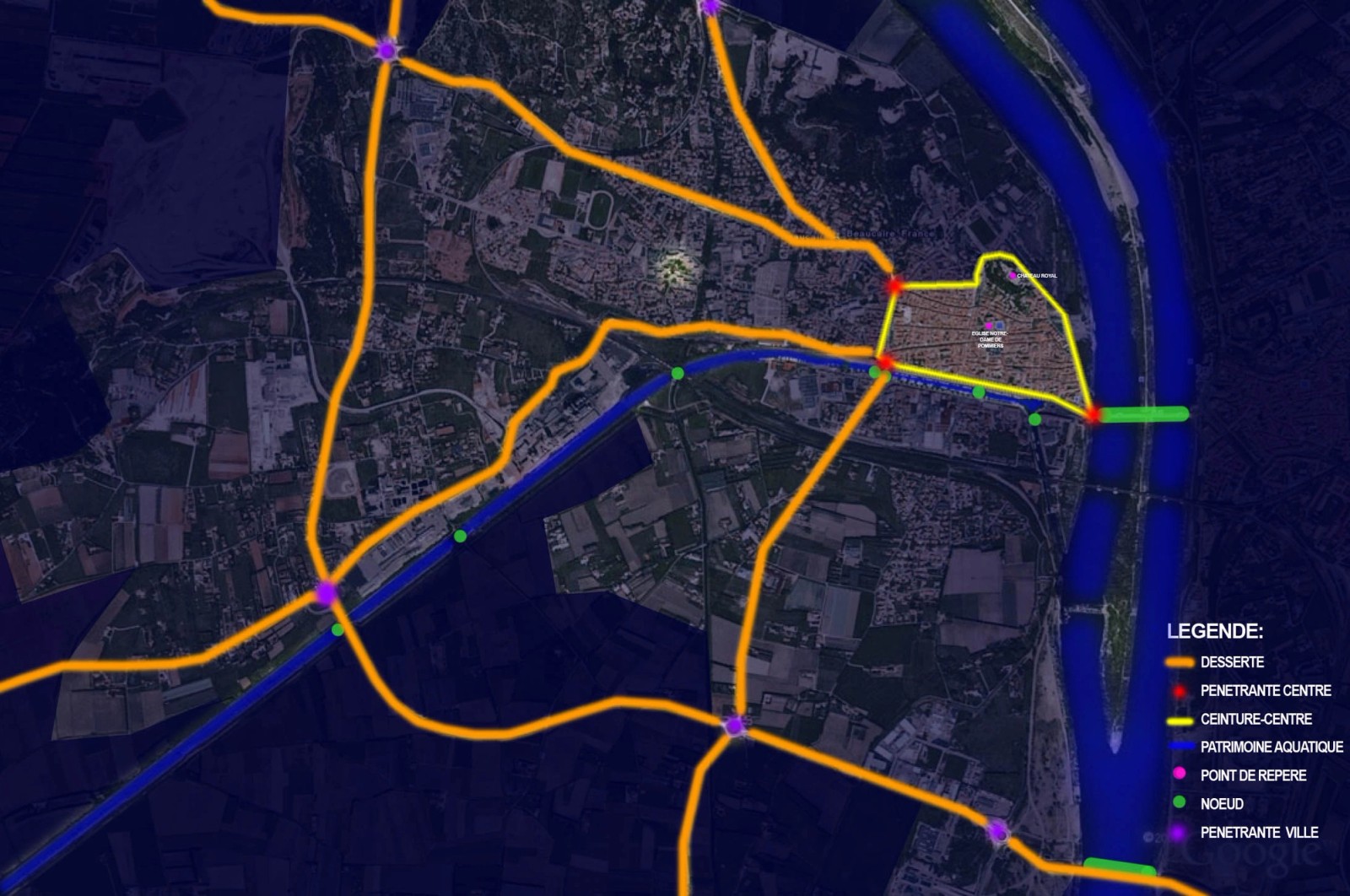 Atelier dada a été mandaté par l’agence Lumière urbaine, sous la direction de M. Jean Sabatier, pour réaliser une analyse sensible des cinq communes de la Communauté de Communes Beaucaire Terre d'Argence (CCBTA) : Beaucaire, Bellegarde, Fourques, Vallabrègues et Jonquières-Saint-Vincent. Située dans le sud de la France, cette région au patrimoine culturel riche cherche à revitaliser son éclairage public tout en renforçant son attractivité touristique.