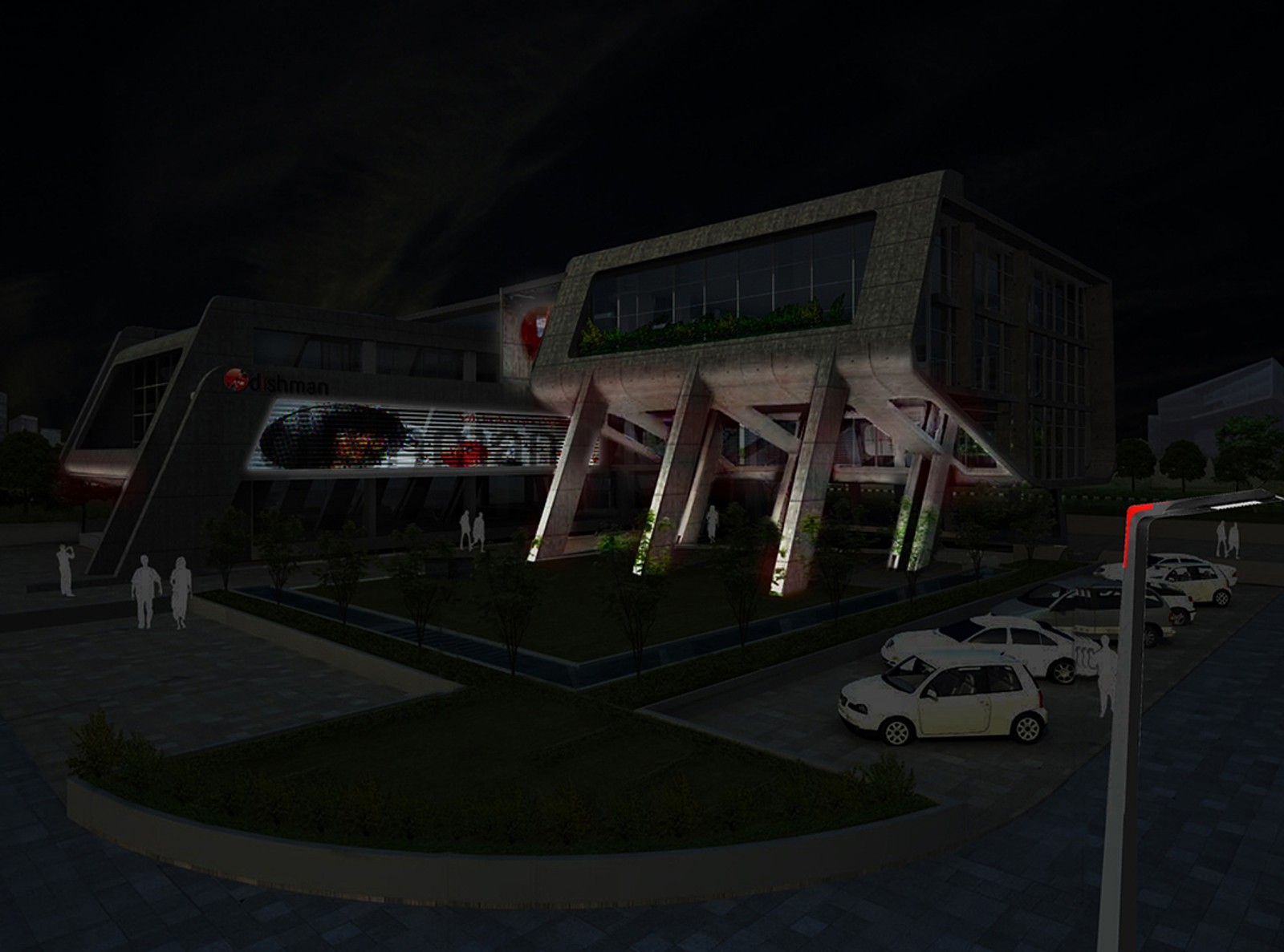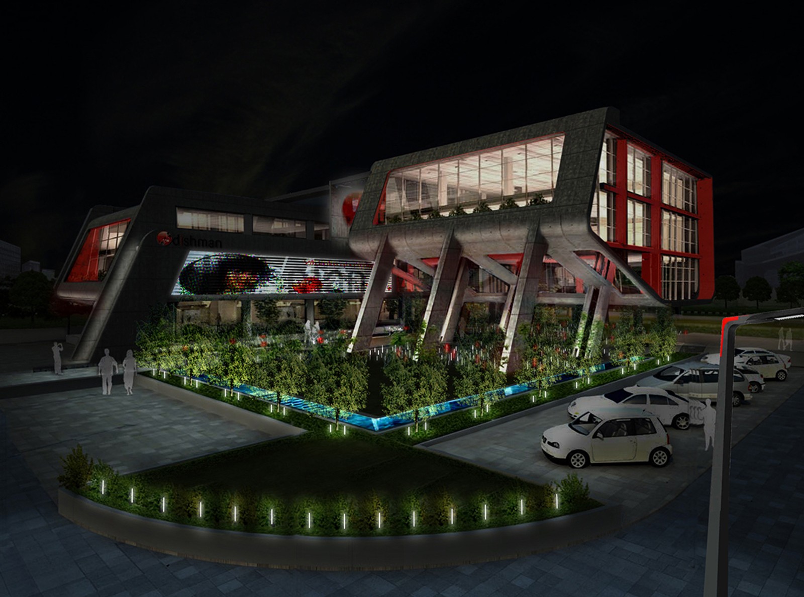 Atelier dada a été invitée à concevoir le concept d’éclairage du futur siège du groupe pharmaceutique Dishman, en collaboration avec INI Design Studio. En réponse à une architecture contemporaine audacieuse, notre vision lumineuse visait à composer une signature nocturne forte, capable de transformer le bâtiment en repère urbain.