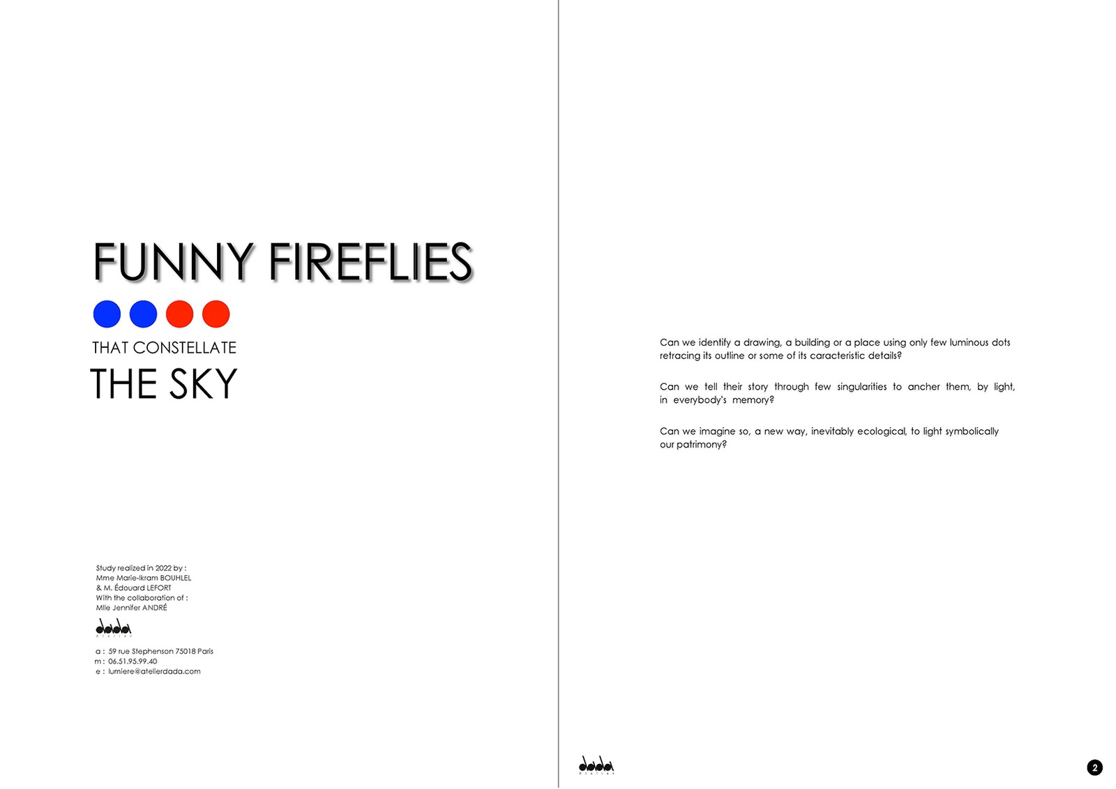 Dans cette étude, nous avons imaginé un spectacle inédit de drones lumineux, invitant les Parisiens à redécouvrir l’âme de leur ville. Depuis le coeur vert de Paris, tel le Jardin des Tuileries, ce ballet de lumières s’élèverait comme une constellation colorée dans le ciel nocturne. Ce spectacle son et lumière recompose, de manière ludique et immersive, les cartes mentales de Paris. À travers des figures aériennes, il mettrait en scène les valeurs républicaines, l’histoire, l’architecture, le Paris de demain engagé dans la transition écologique, et les symboles chers aux Parisiens. Porté par une technologie de pointe, ce feu d’artifice d’un nouveau genre est pensé pour être écologique et durable, un ciel étoilé mouvant qui révèle l’identité de la ville tout en créant des liens profonds entre Paris et ses habitants, fédérant une identité commune digne de la Ville Lumière.
