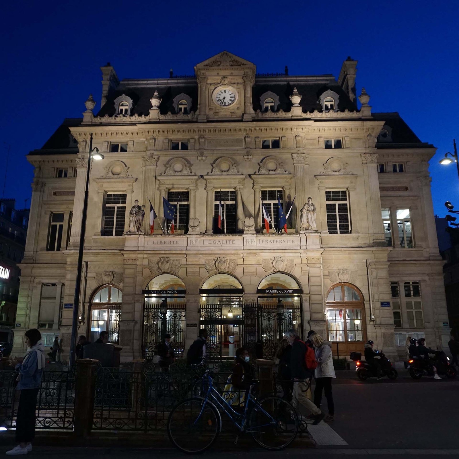 En solidarité avec l'Ukraine voisine, durement frappée par les événements récents, plusieurs mairies parisiennes ont choisi de manifester leur soutien au peuple ukrainien et leur rejet de la guerre, en illuminant temporairement leurs bâtiments aux couleurs du drapeau ukrainien.