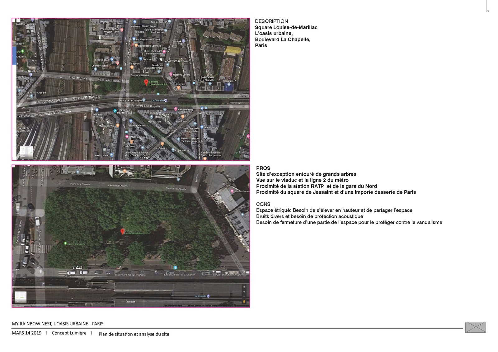 Implantée au Square Sainte-Louise de Marillac, la structure prend la forme d’un kiosque multifonctionnel destiné à accueillir les associations de quartier. Protégé des nuisances sonores et de l’agitation environnante, le dispositif agit à la fois comme un refuge et comme un balcon suspendu, offrant une nouvelle manière d’habiter et de percevoir l’espace public.