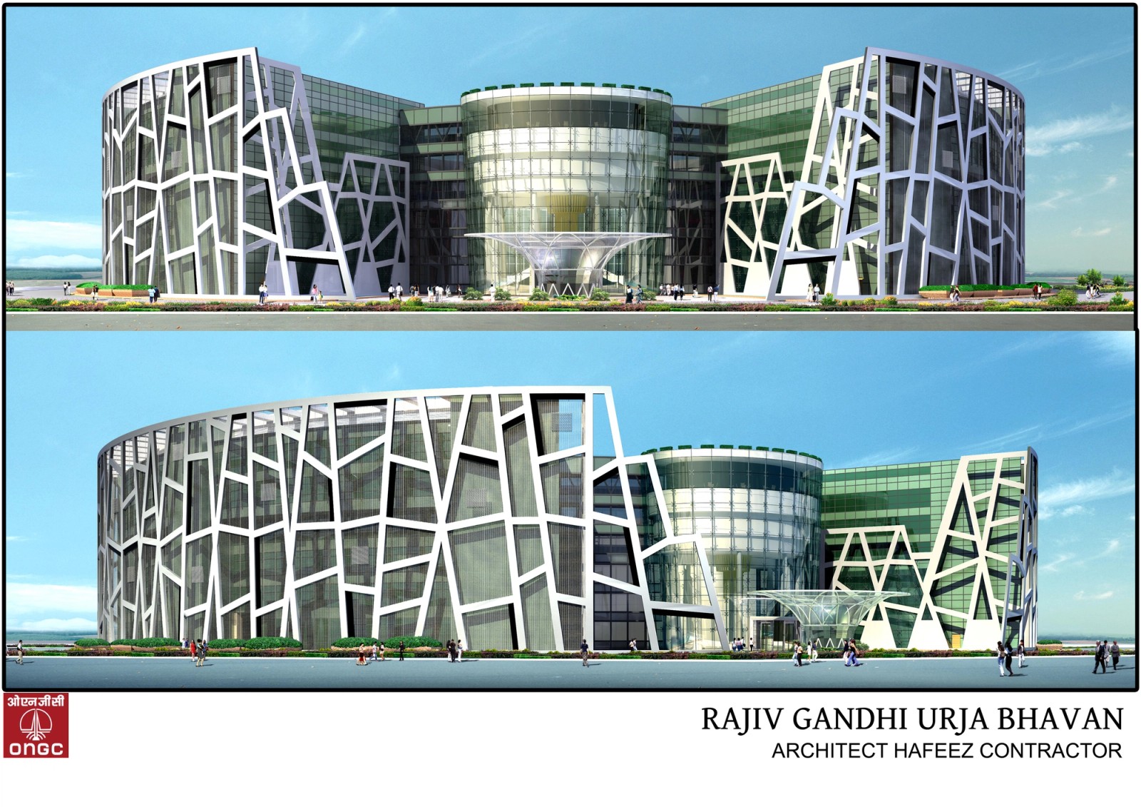 Pour le siège de ONGC, principal acteur du pétrole et du gaz en Inde, le concept lumière a été pensé comme une expression abstraite de l’énergie à l’état pur. Conçue par Hafeez Contractor, l’architecture s’inspire des strates de la croûte terrestre. Atelier dada a prolongé cette narration par une vision lumineuse poétique, traduisant l’extraction des ressources naturelles depuis les profondeurs de la terre en un récit lumineux.