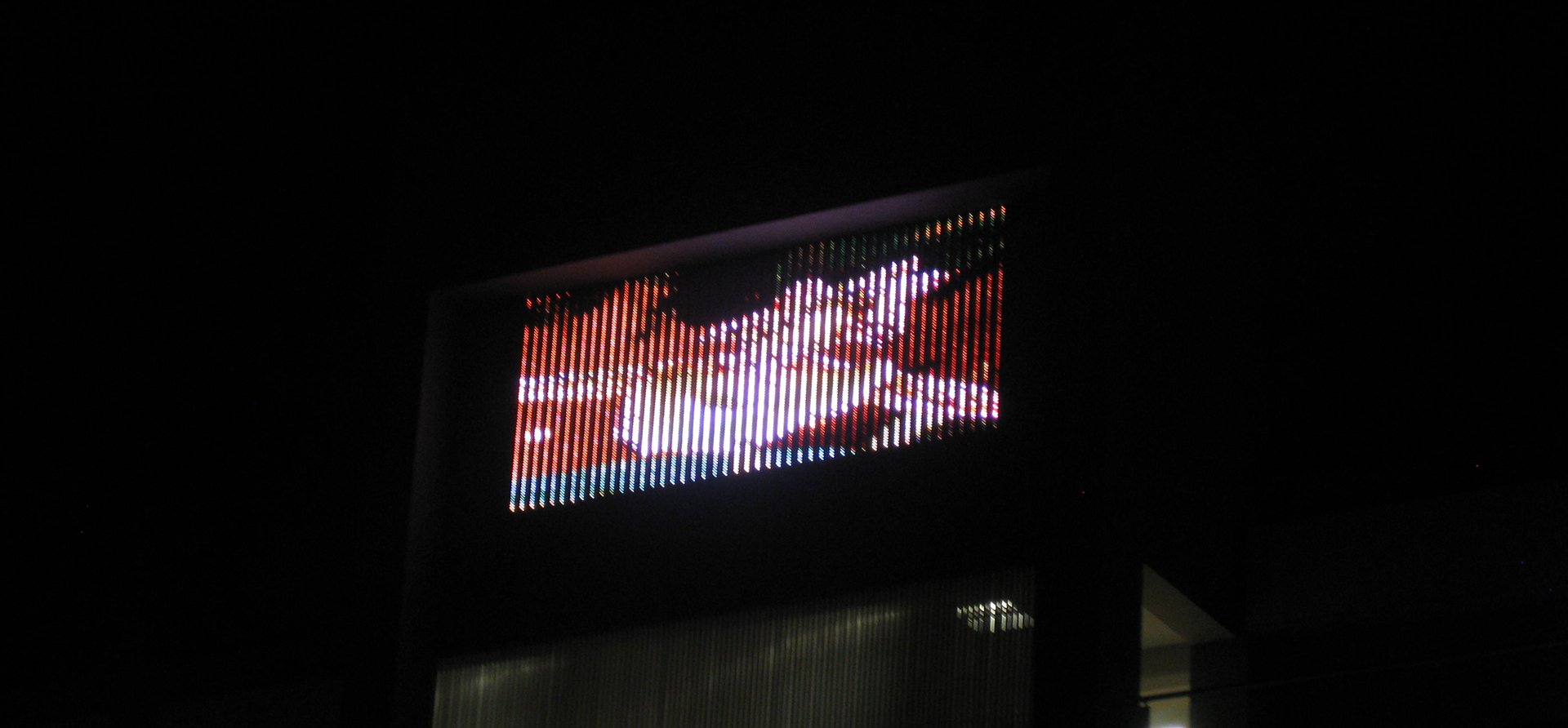 Le projet articulait plusieurs distances de perception. Deux mascottes lumineuses en forme d’orchidées, réalisées à partir de media LED battens, étaient fixées sur les pignons aveugles des blocs latéraux. Visibles de loin, elles agissaient comme des repères lumineux dans le paysage urbain. À une échelle intermédiaire, chaque bloc était équipé d’un écran LED à très basse résolution, positionné au-dessus de son entrée principale. Détournant la typologie classique de la façade média, ces écrans diffusaient des cycles lumineux lents, synchronisés avec l’ensemble du dispositif. À proximité, les arbres bordant la façade avant étaient éclairés en parfaite harmonie chromatique avec les scènes média, comme si la lumière se déployait naturellement à partir du symbole de l’orchidée.