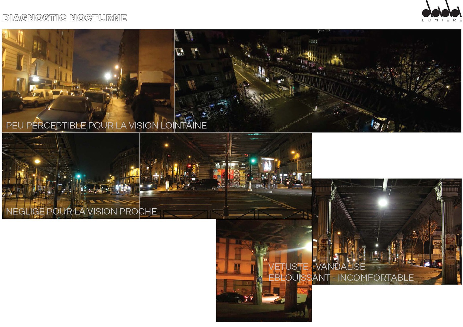 À la suite des retours des riverains et des associations locales, la Ville de Paris a confié à Atelier dada, fin 2017, la mission de repenser l’éclairage nocturne des viaducs Nord et Sud selon une vision plus harmonieuse, inspirante et porteuse de sens pour le quartier. L’enjeu était de dépasser la seule fonction pour proposer un récit lumineux capable de retisser des liens entre l’infrastructure, les habitants et la vie urbaine.