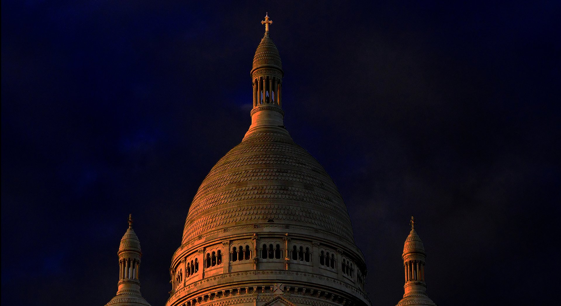 À mesure que la nuit avance, la lumière amorce son retrait. Elle se retire avec soin, se dissolvant progressivement dans l’obscurité, laissant place à un silence grandissant. Dans la profondeur nocturne, seule la croix du Sacré-Cœur demeure doucement lumineuse, suspendue dans le ciel. Cette lueur finale résonne avec retenue, comme un point d’orientation intérieure.