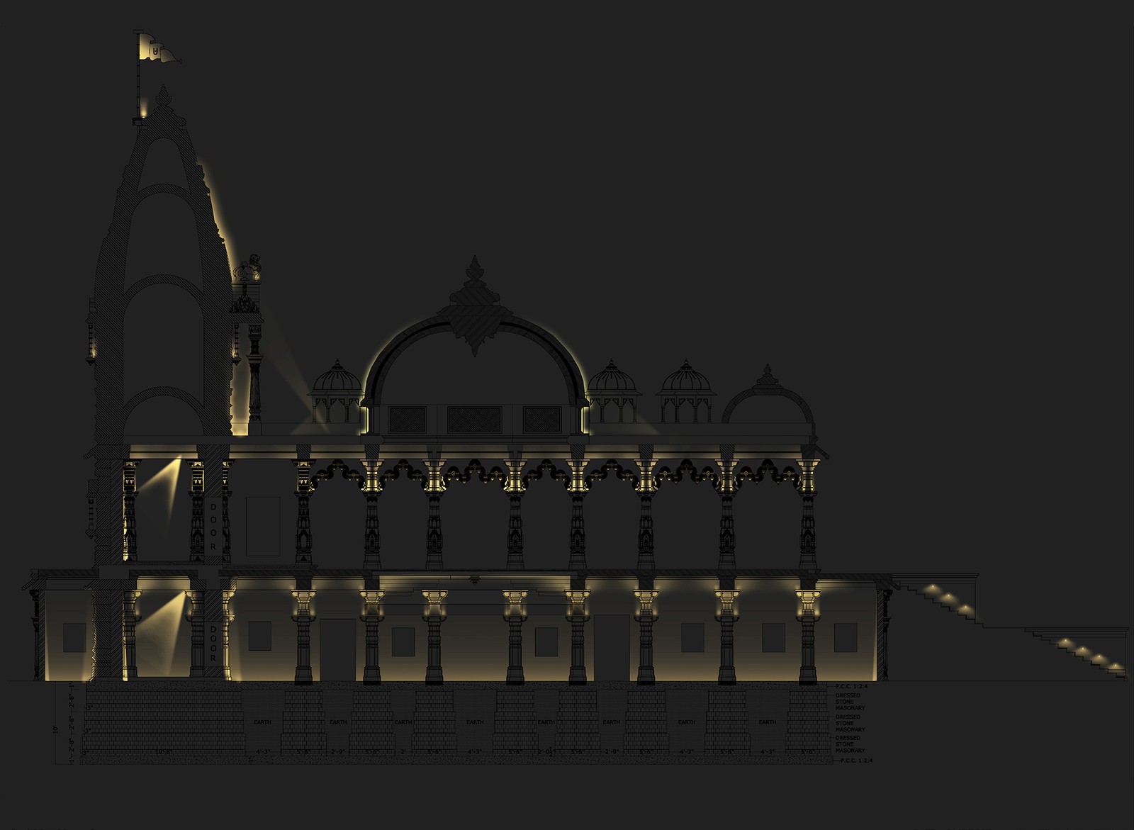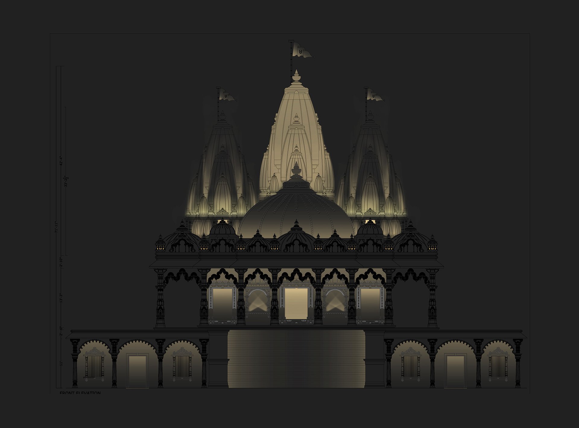 Pour le temple SMVS, Atelier dada a imaginé une atmosphère lumineuse sereine et mesurée, pensée pour révéler l’architecture tout en approfondissant l’expérience de la dévotion et de la méditation. La lumière y est conçue comme un accompagnement sensible du rituel, capable de souligner, guider, accentuer ou s’effacer selon l’importance symbolique des éléments architecturaux.