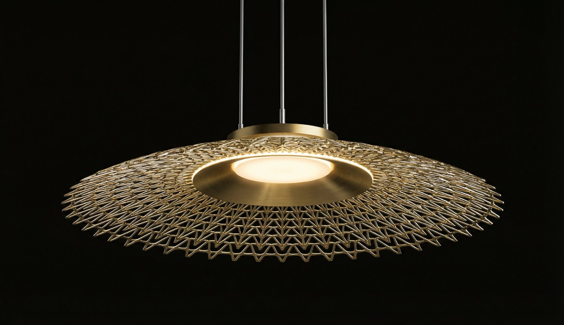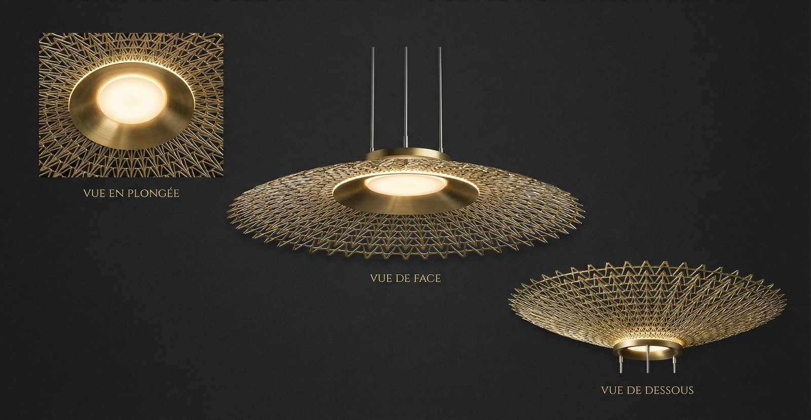 Le dessin privilégie une lecture fluide et intemporelle, où la source lumineuse disparaît au profit d’une forme continue, presque flottante. La suspension devient ainsi un élément structurant de l’espace, sans jamais s’imposer, jouant sur la profondeur, la vibration et la perception du vide.
