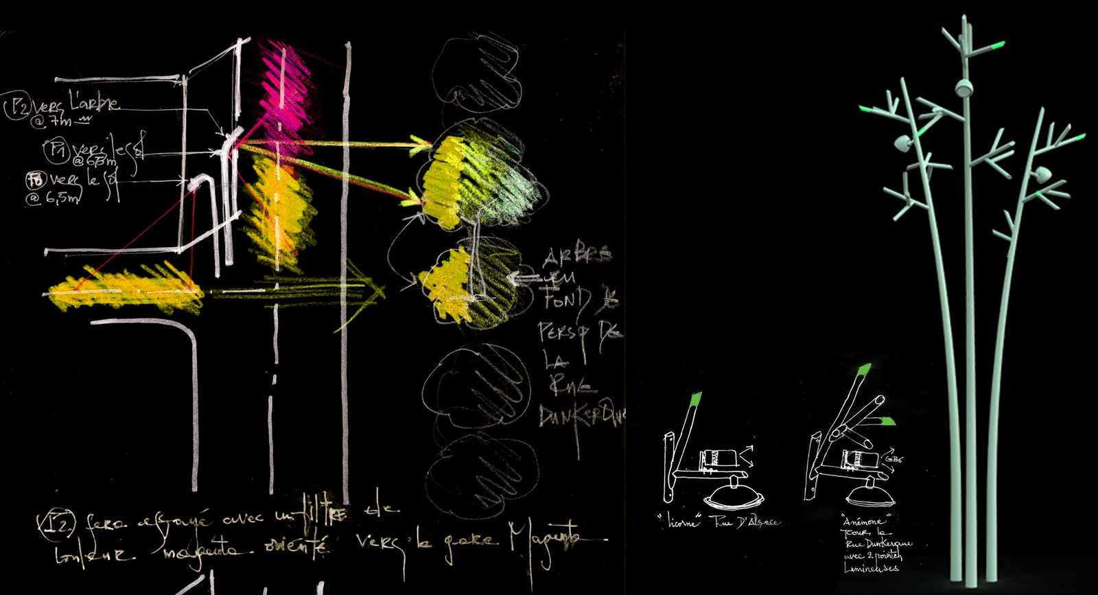 Ce schéma directeur d’aménagement lumière pour le projet Tripôle des gares à Paris, conçu par Atelier dada, propose de créer un lien cohérent, lisible et de grande qualité entre trois pôles majeurs de mobilité : la Gare de l’Est, la Gare Magenta et la Gare du Nord. Par une écriture lumineuse forte et maîtrisée, le projet vise une revalorisation urbaine globale, redéfinissant à la fois la signalétique et le paysage pour offrir une continuité fluide et engageante au cœur de Paris.