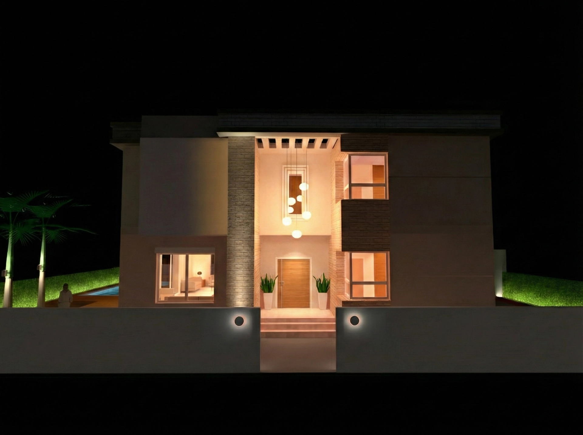 Le souhait du client était simple : rendre la maison lisible la nuit, comme une présence lumineuse identifiable dans son environnement proche. L’éclairage extérieur assume ainsi une expression claire, soulignant l’architecture et offrant à la villa une visibilité calme dans le quartier.