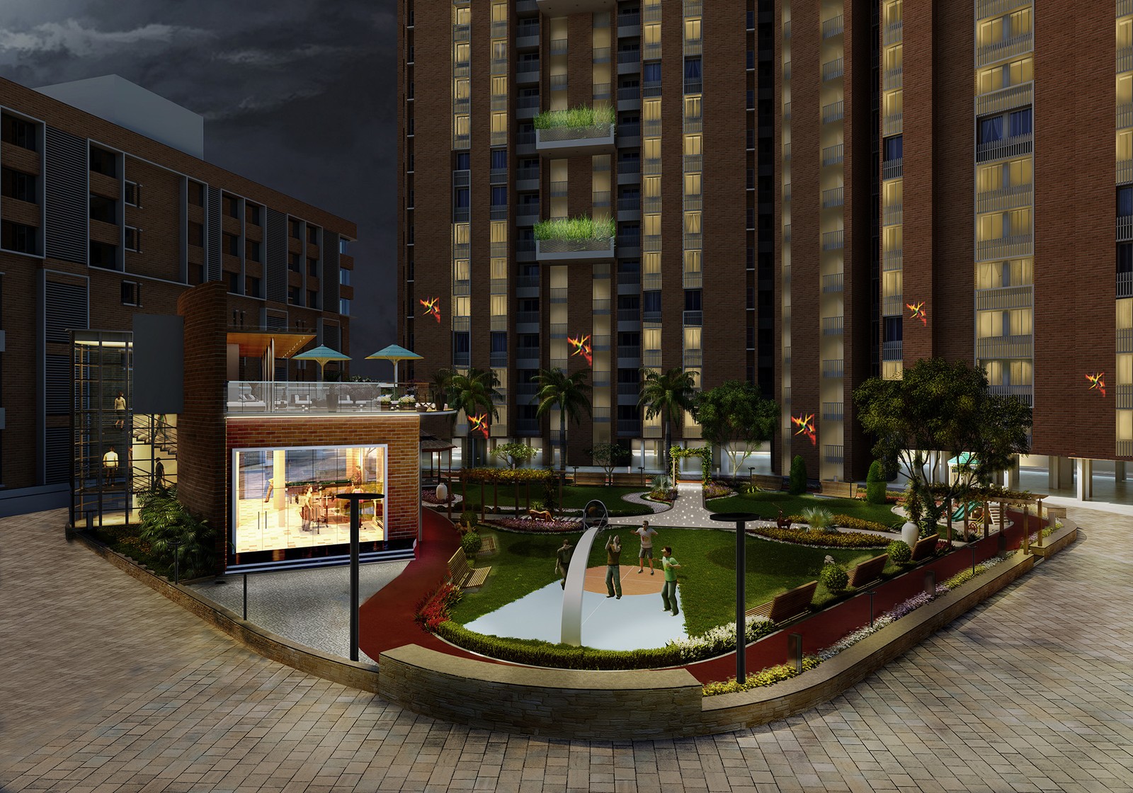 Implanté à un carrefour stratégique, à la rencontre d’un large rond-point et d’un axe routier majeur, le bâtiment s’affirme comme le visage public de l’ensemble du complexe, tandis que les espaces résidentiels se déploient en retrait. Notre intention était de métamorphoser cette architecture de béton et de verre en un paysage habité, en imaginant une sculpture monumentale de Ganesh façonnée en herbe végétale. Autour d’elle, des jardinières suspendues et des plantes grimpantes venaient envelopper les façades et dissimuler les grilles de ventilation, offrant au bâtiment une présence apaisée et organique.